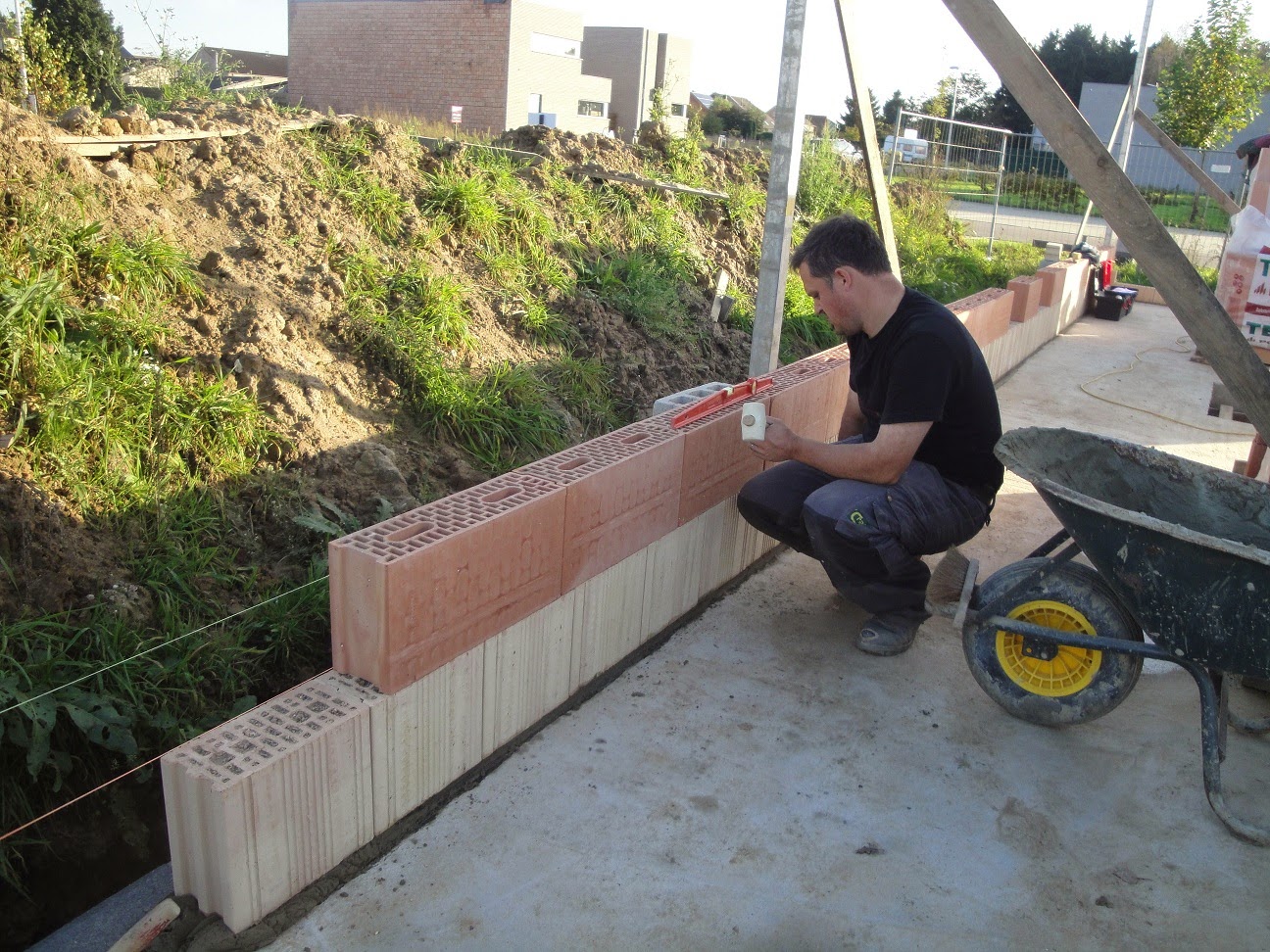 Afgelopen vrijdag zijn we begonnen met het metsen van het kimblok. Dit is de eerste blok van de binnenmuur ... Deze steen moet ook isolerend zijn zodat de isolatieschil niet wordt doorbroken. Wij hebben gekozen voor het Lamdabloc van Ploegsteert.